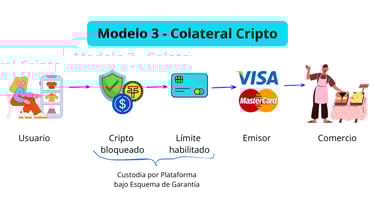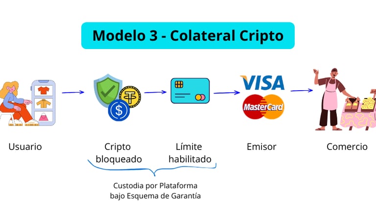 En este esquema, el usuario deposita cripto como garantía. Ese activo queda bloqueado para respaldar un límite de gasto habilitado por la plataforma.
